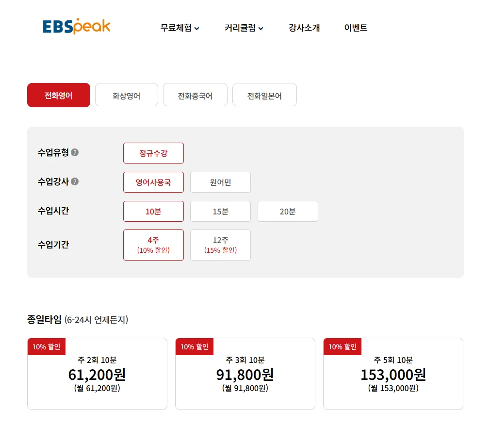 EBS 전화영어 가격 — 요금제별 정리